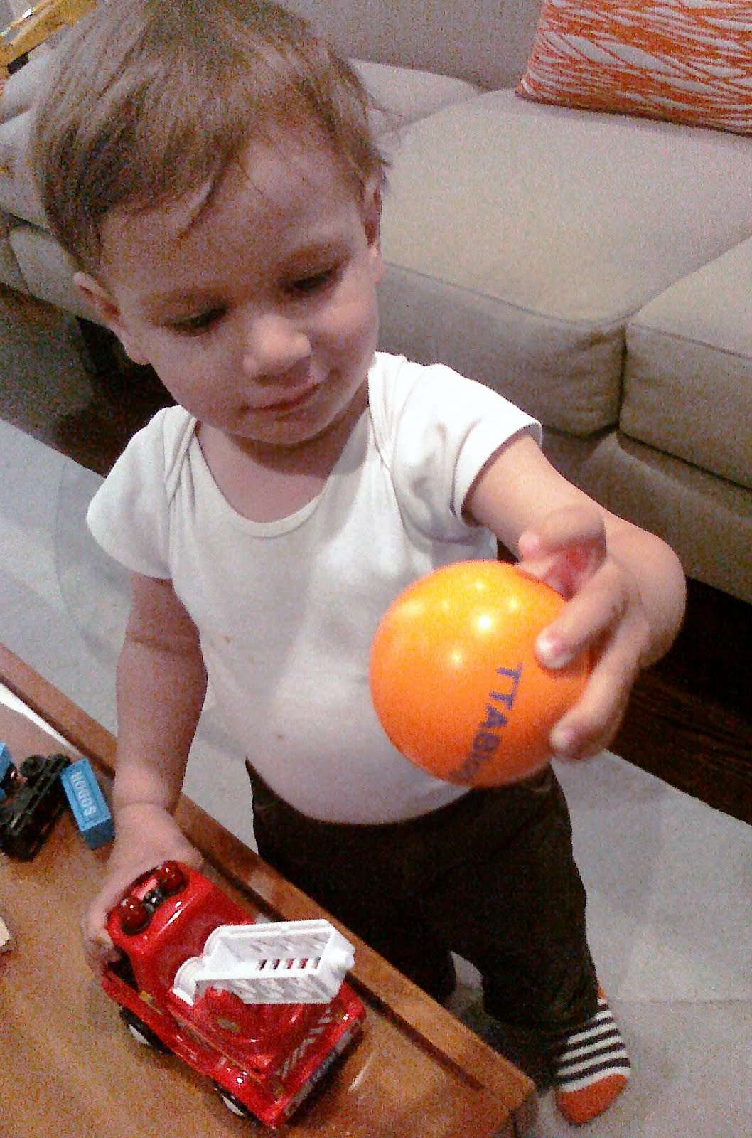 Maxton "Max" Zilinek, an avid reader of this blog, recently took the TTABlog toy test. As seen below, Max chose the TTABlog stress ball over the boringly traditional fire truck, proving again that the TTABlog stress ball is an instant classic. Max is reportedly working on his knuckleball, and if he can perfect it, Max may expect a long professional career in baseball, since left-handed knuckleballers are as rare as a White Sox fan in Boston.