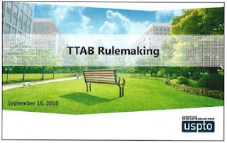 - The TTAB rulemaking package will be issued this month, with an effective date of January 14, 2017.